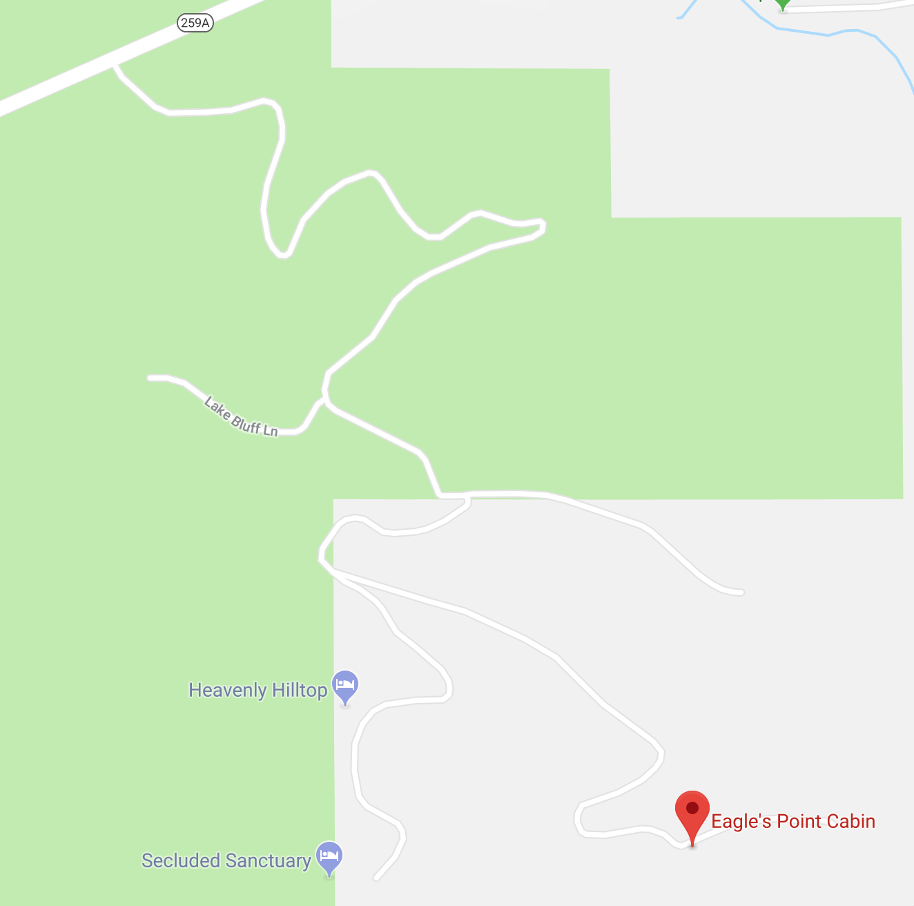 You can enter "Eagle's Point Cabin" into Google Maps and it will give you good directions to the cabin. Be sure Google Maps has offline access as you may lose cell service as you approach the cabin. Cell service does improve once you are at the cabin.